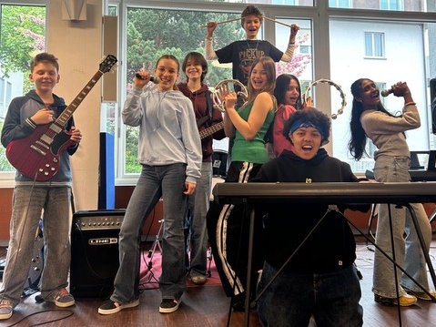 Pfajaaal besteht seit 2024 aus 8 Bandmitgliedern (12-16 Jahre) und probt wöchentlich an der Freien Katholischen Schule Sumatra in Zürich.